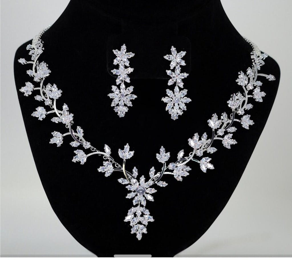 Swarovski Crystal Shimmering Leaf Veil Diamond/Crystal Necklace Set, Bridal Necklace Set, Bridal Jewelry, Statement Necklace