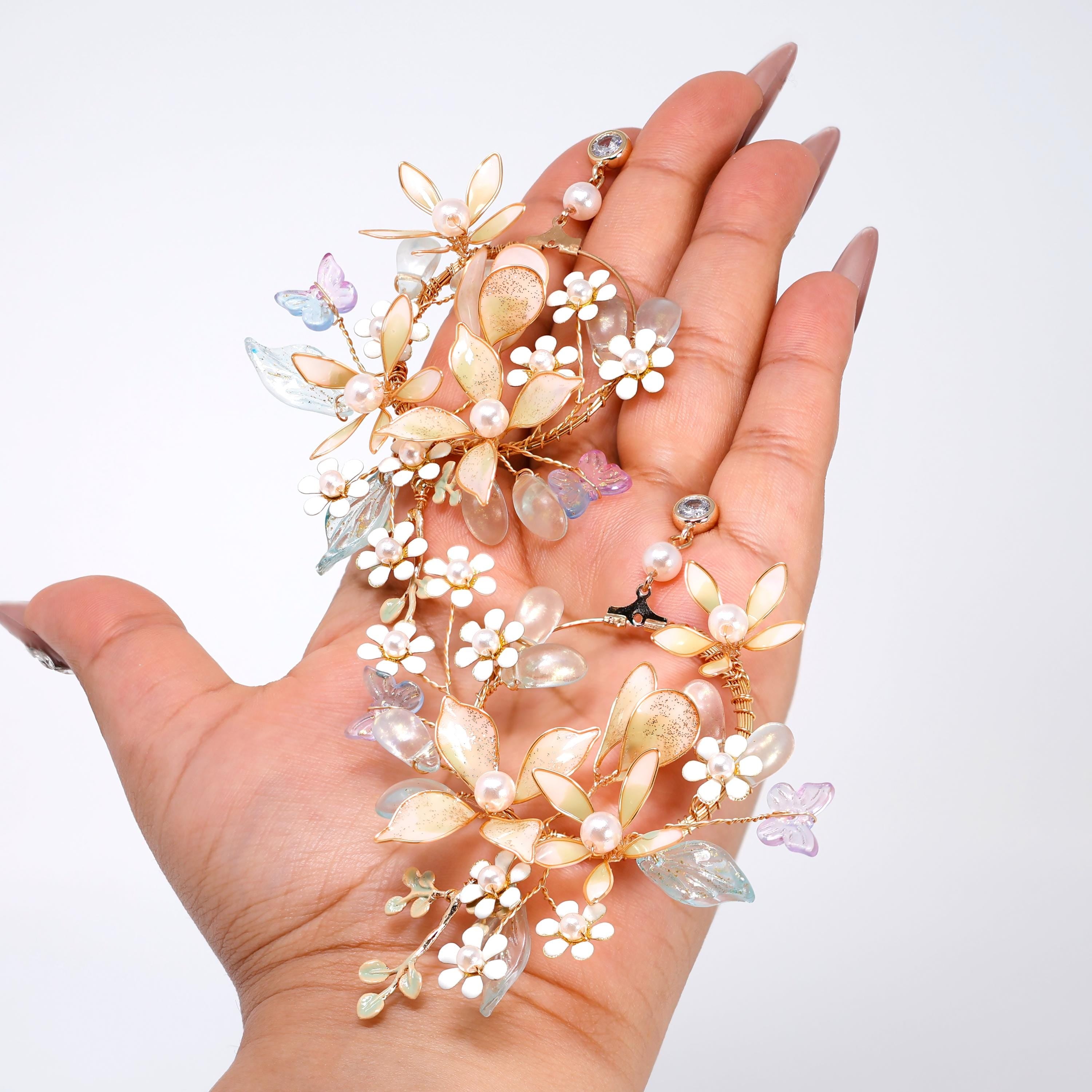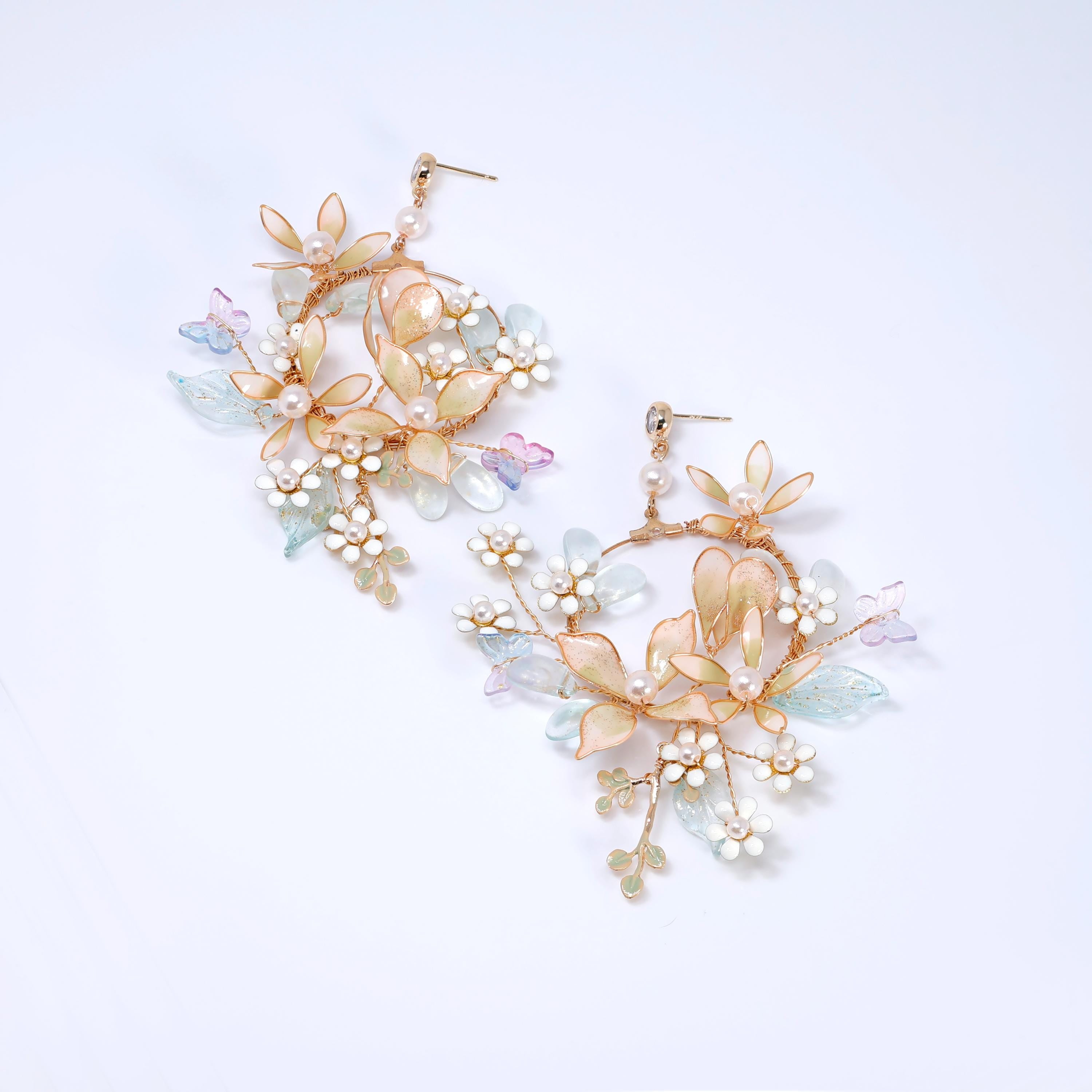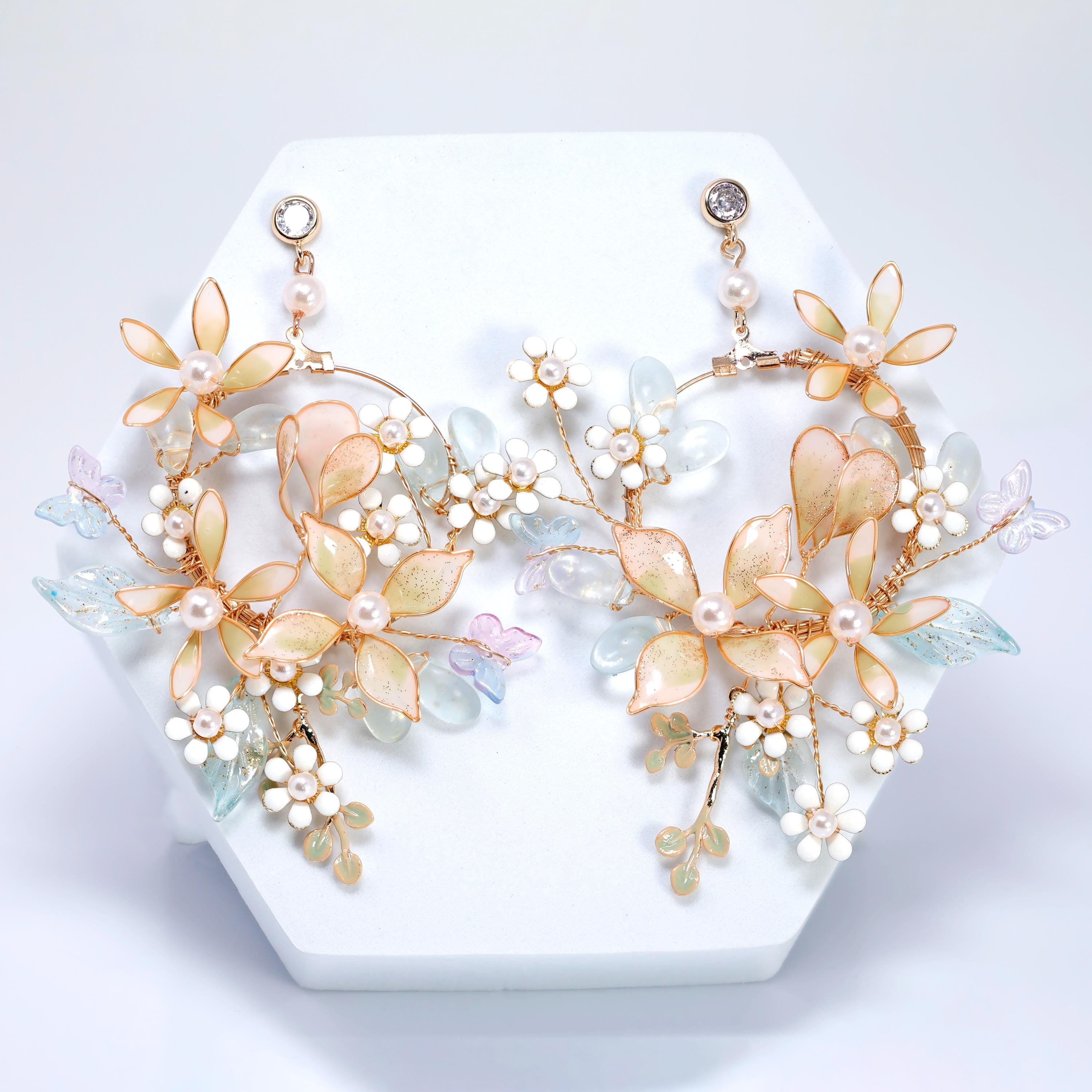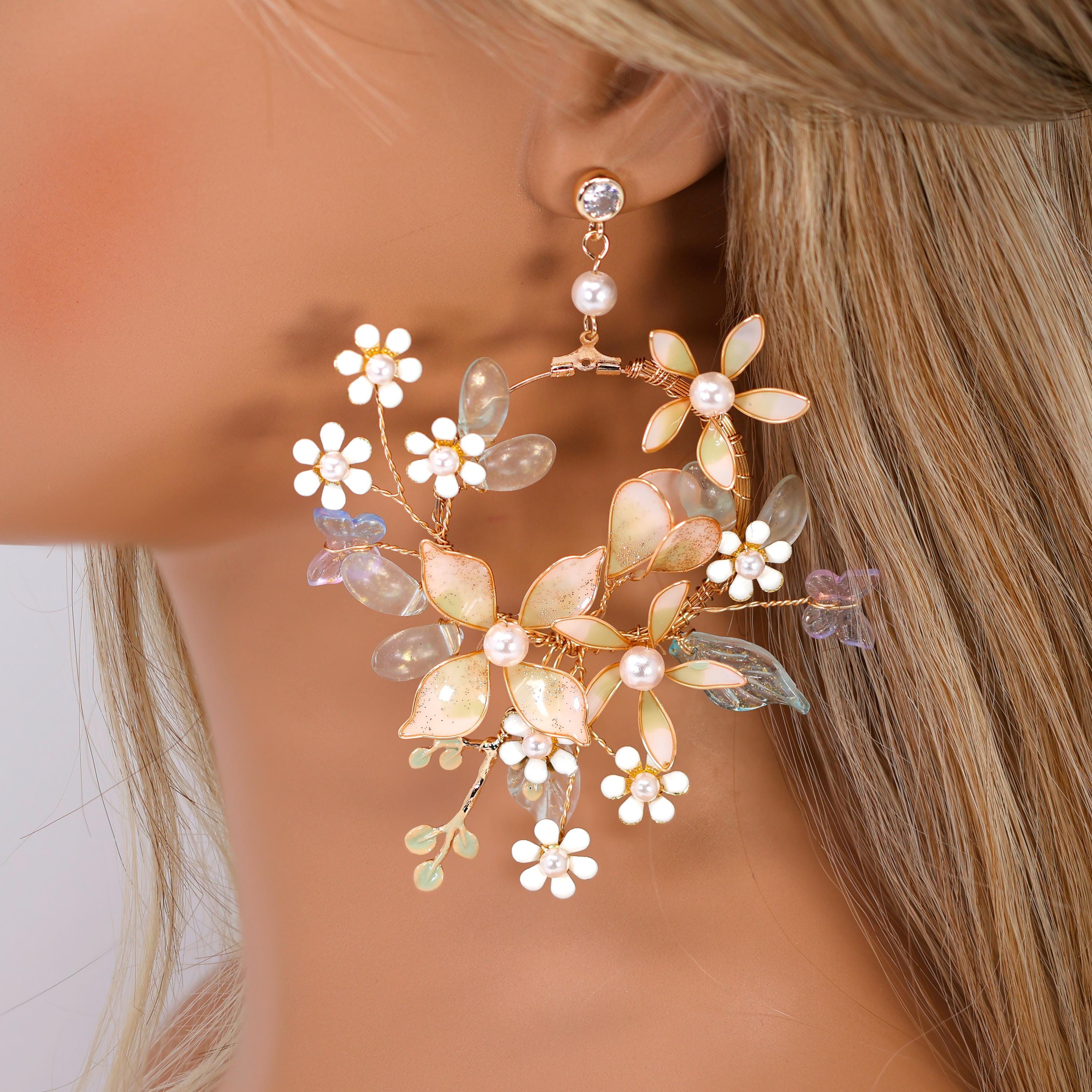 Mesmerizing Fairy Land Earrings : Faux Pearl And Acrylic Floral Bridal Jewelry