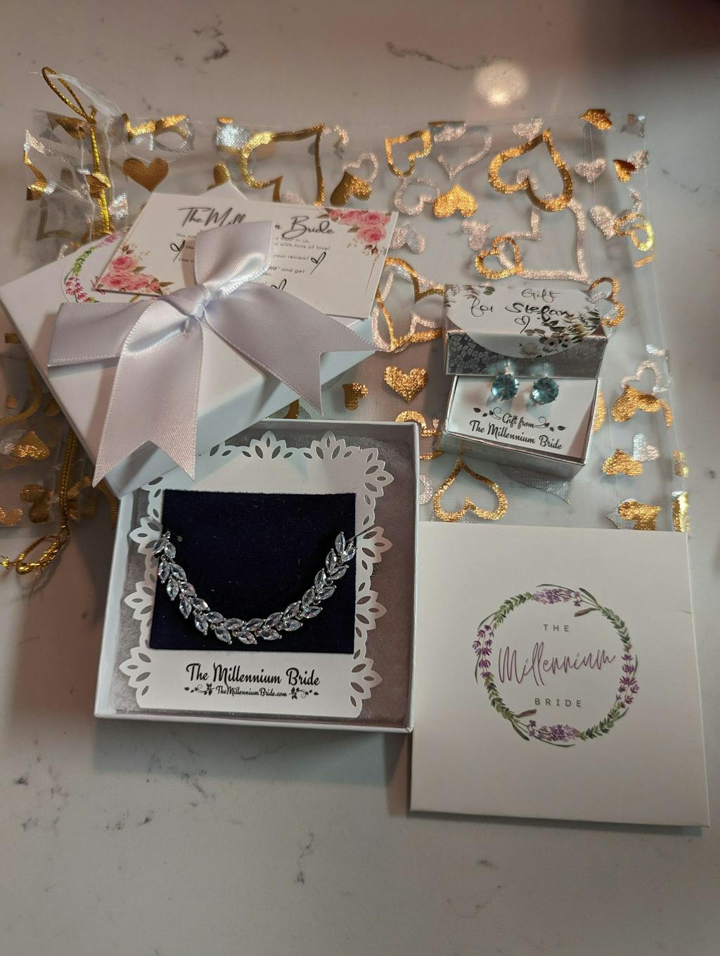 - • Each item is 100% gift-ready, and every order comes with a personalized handwritten card and a branded Millennium Bride jewelry cloth.