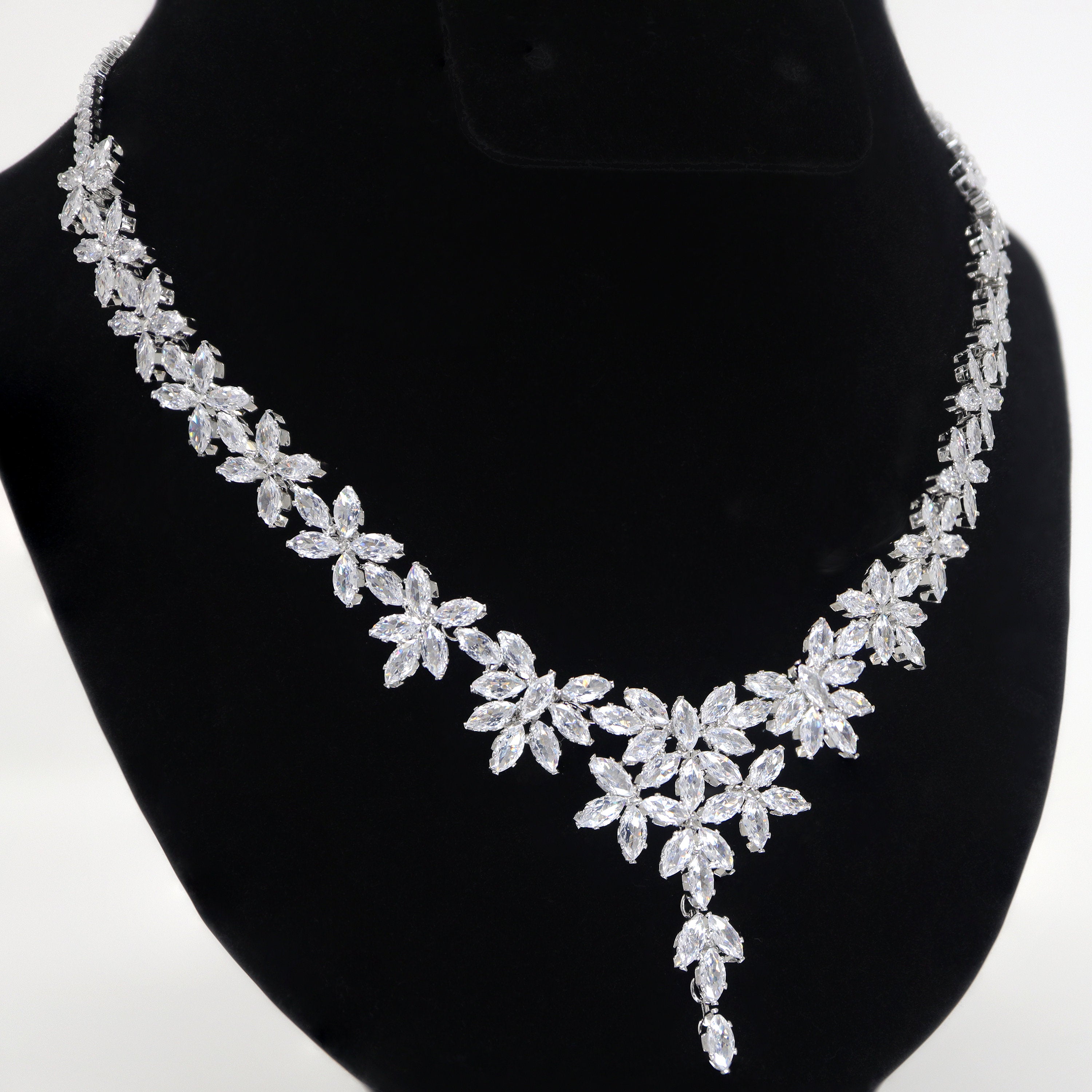 These beautiful romantic Elegant Floral Vine Drop necklace is made of very fine quality of Swarovski crystals for your special day!