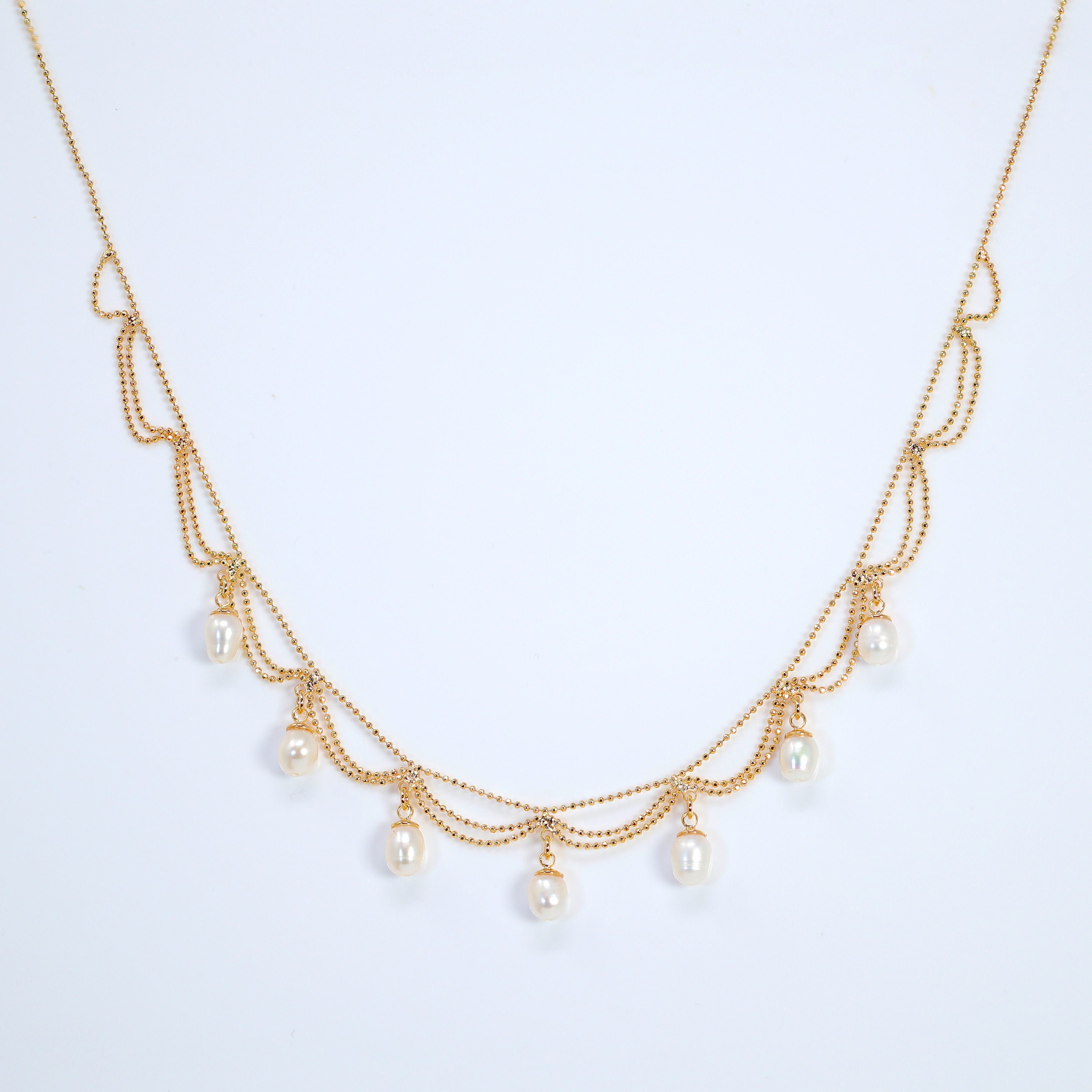 These beautiful romantic PEARL DROP necklace set are made of very fine quality of Metal and Freshwater Pearl for your special day!