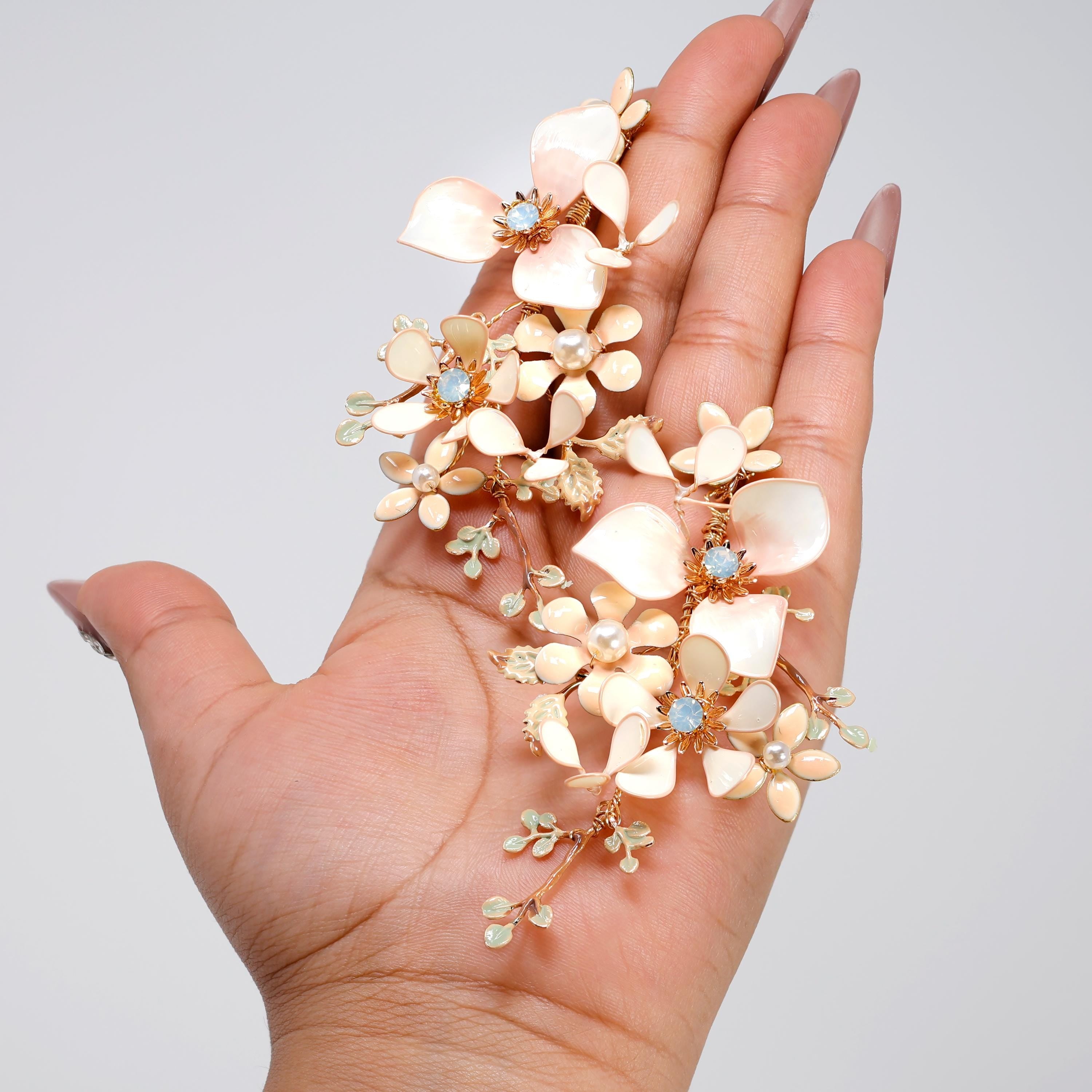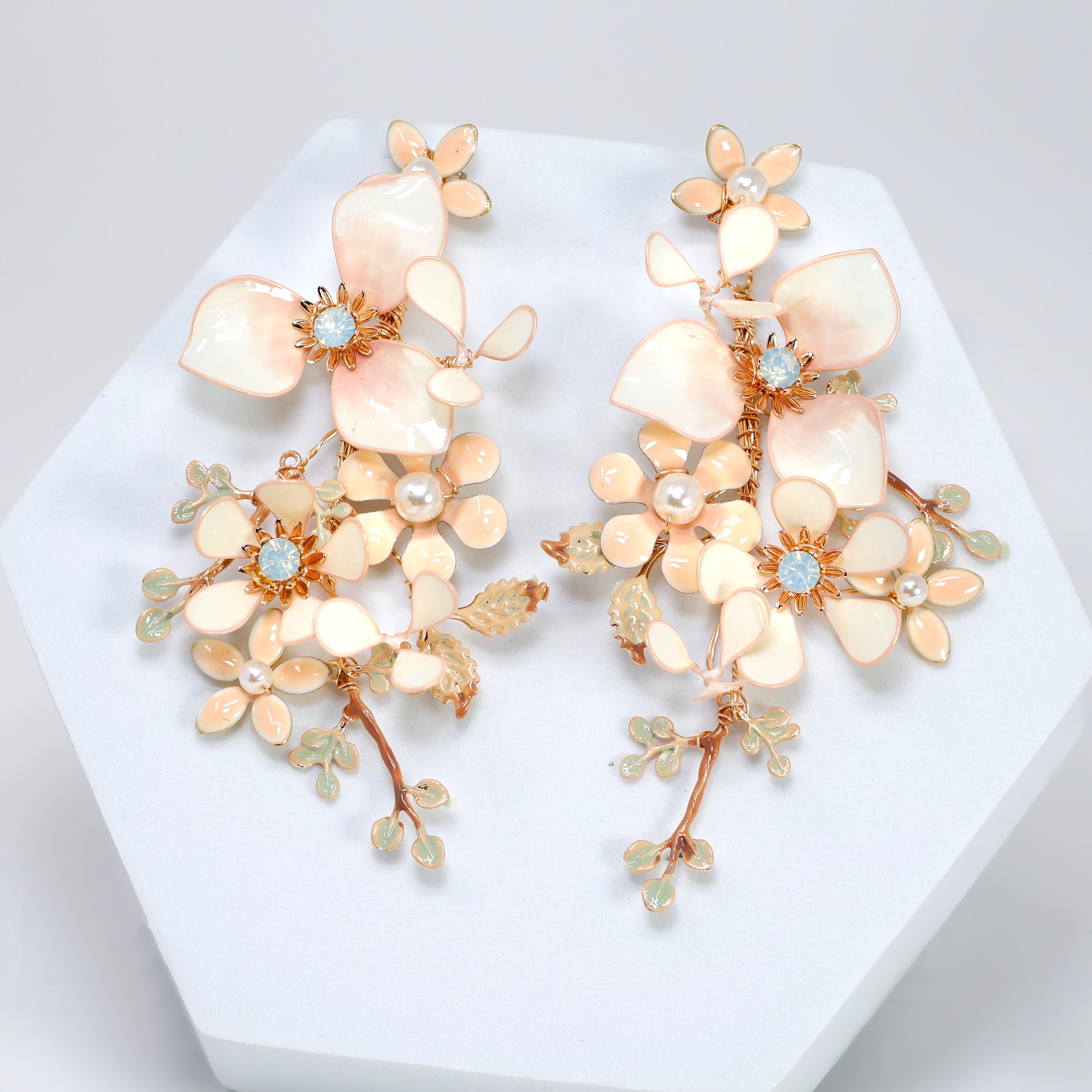 This beautiful romantic earrings handmade with fine quality of crystals, Faux pearls, opal, Acrylic flowers and Allergy friendly Metal for your special day.