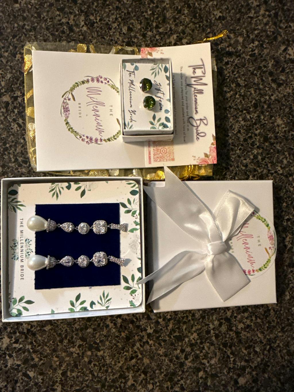 • • Each item is 100% gift-ready, and every order comes with a personalized handwritten card and a branded Millennium Bride jewelry cloth.